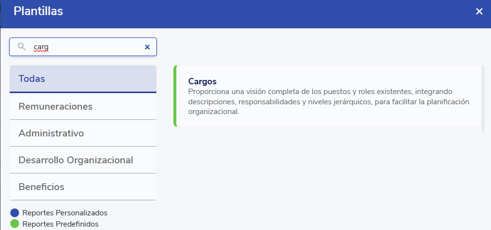 Then, you need to look for the "positions" template, which is located under Administrative, or use the search bar to make it easier to find. Click on it, and since it is a predefined report, it will be created.