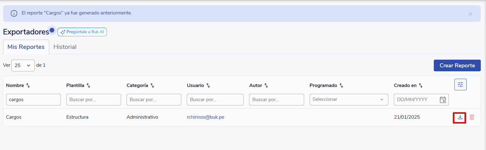 To download it, you must go to theReporting Module >> Exporters >> My Reports >> Create Report.