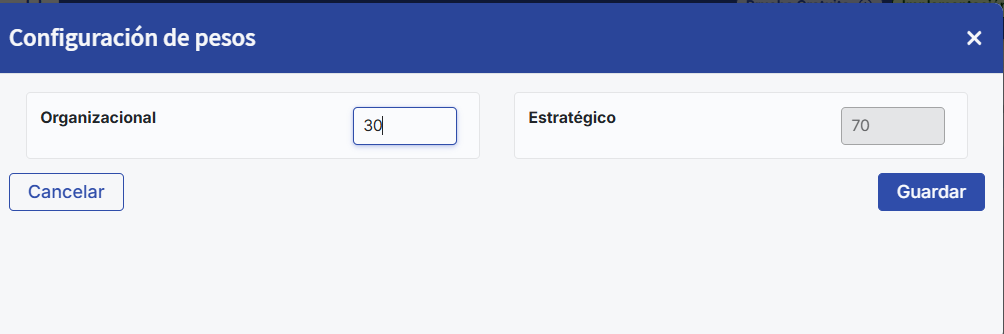 A window will open where you can modify the weights assigned to the different objective categories, remembering that the total must add up to 100%.