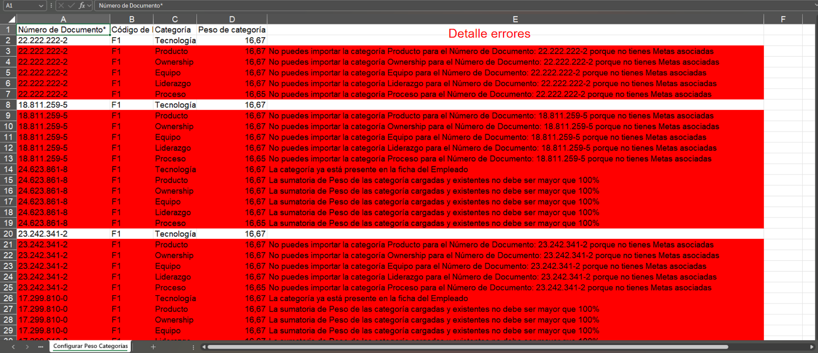 Gray for the “Configurar Peso Categorías” sheet.