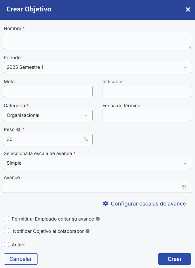 In this article we refer to “Objetivos” as the goals employees must achieve. We know that other platforms commonly use terms like “Metas,” and that on our platform the name may vary depending on each organization’s configuration. However, for the purposes of this article, we will consistently use the term “Objetivos” to refer to this concept.