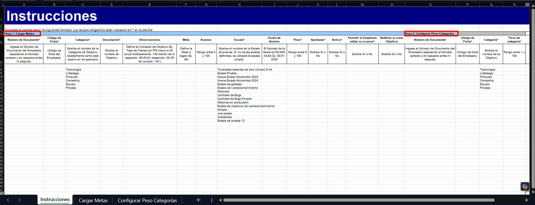 - Light blue for the “Cargar Objetivos” sheet.