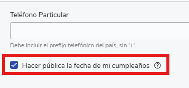 The employee must go to their personal profile, select the update data option, and enable or disable the visibility of their birthday so that it is shown or hidden on the portal and in announcements. Only the employee themselves can modify this setting.