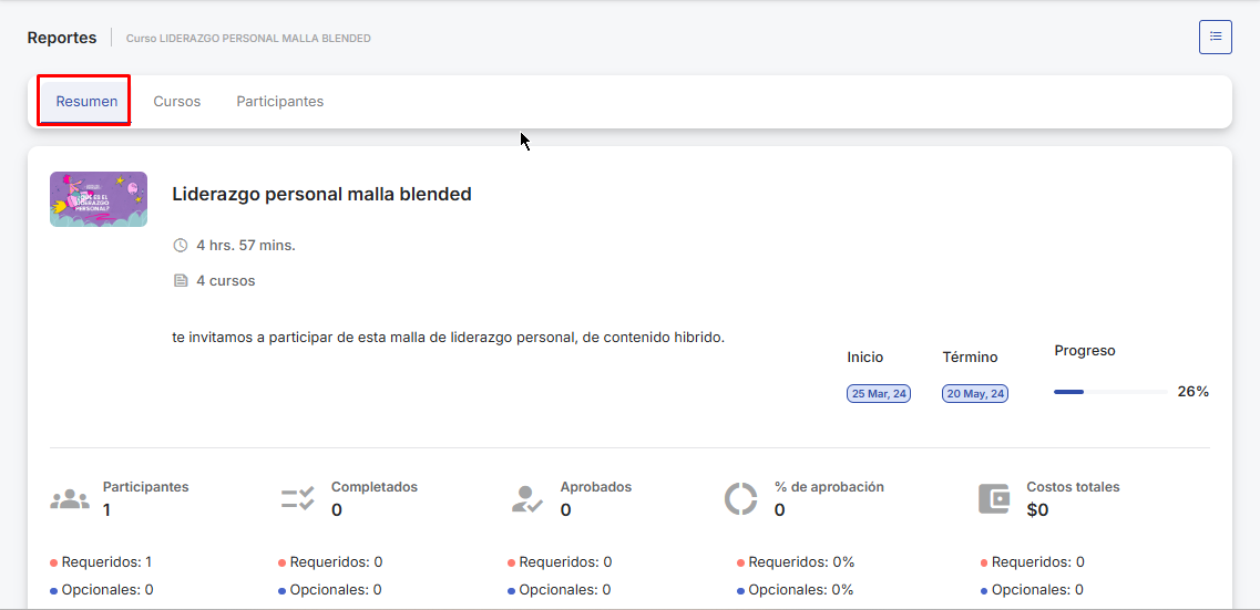 📘 Courses:Shows all the courses that are part of the path, including previous versions if there have been changes. You will see: