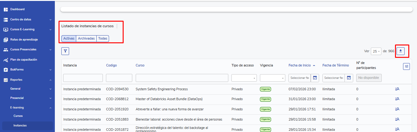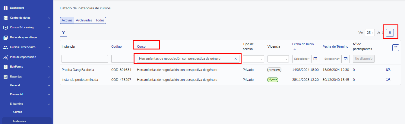 How to access the e-learning course instance report