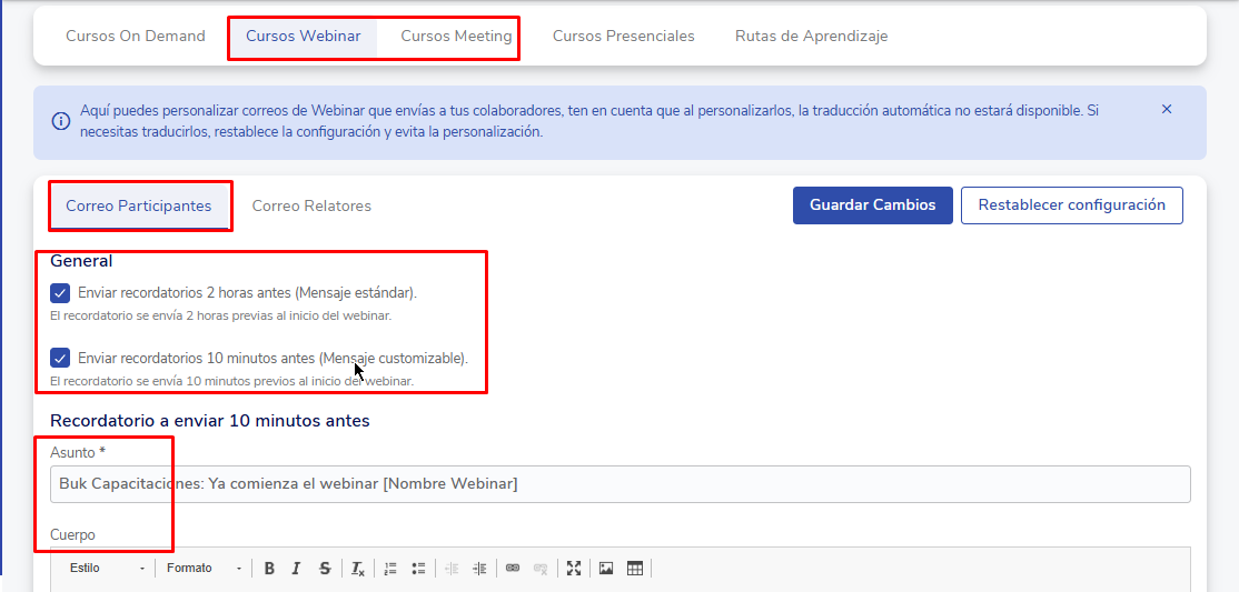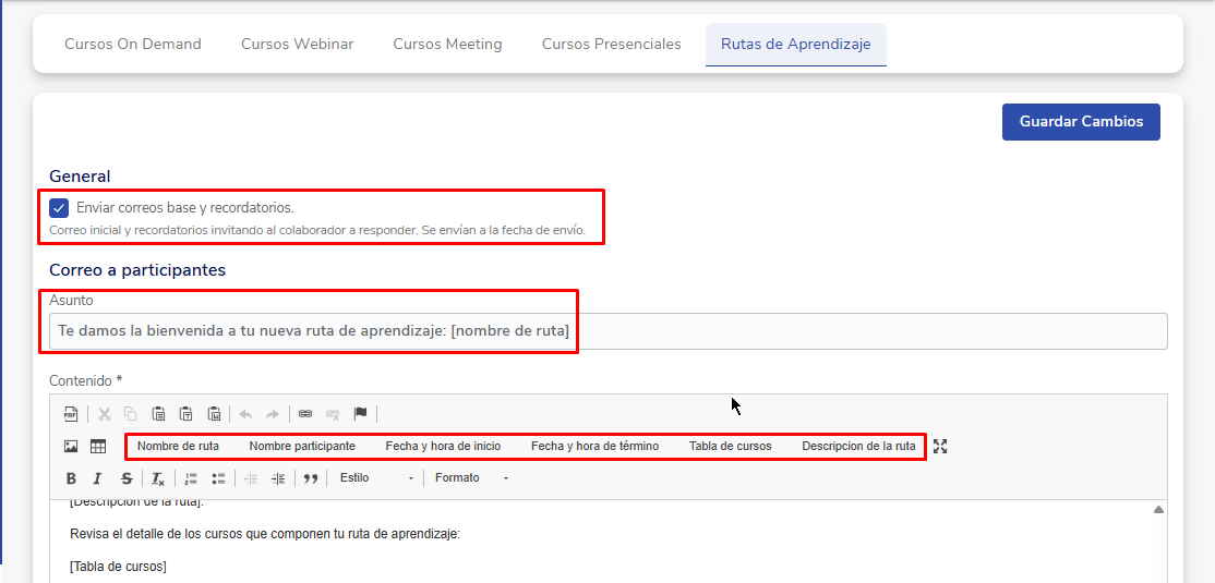 How to configure automatic emails for courses and learning paths