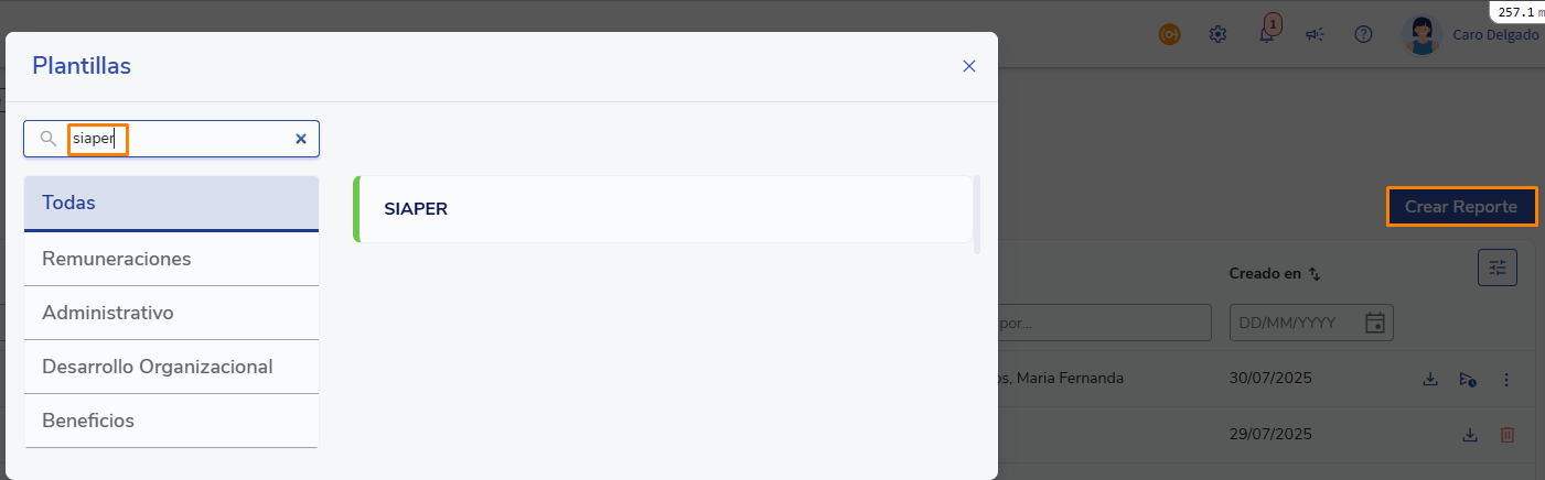 - Click on Create Report and look for the SIAPER template.