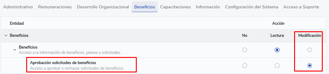 To approve benefits you must have prior permission in your profile, but there is a variant that is important to take into consideration, in case of