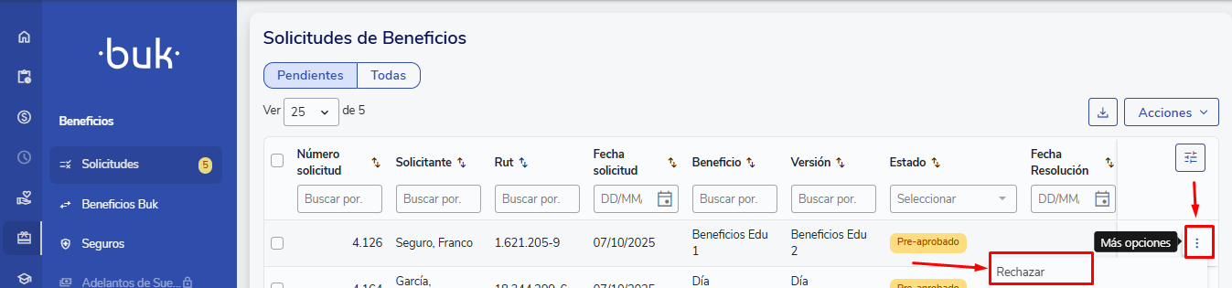 In addition to approving, users with the profile ofBenefits Administratorcan alsorejectordeleterequests.
