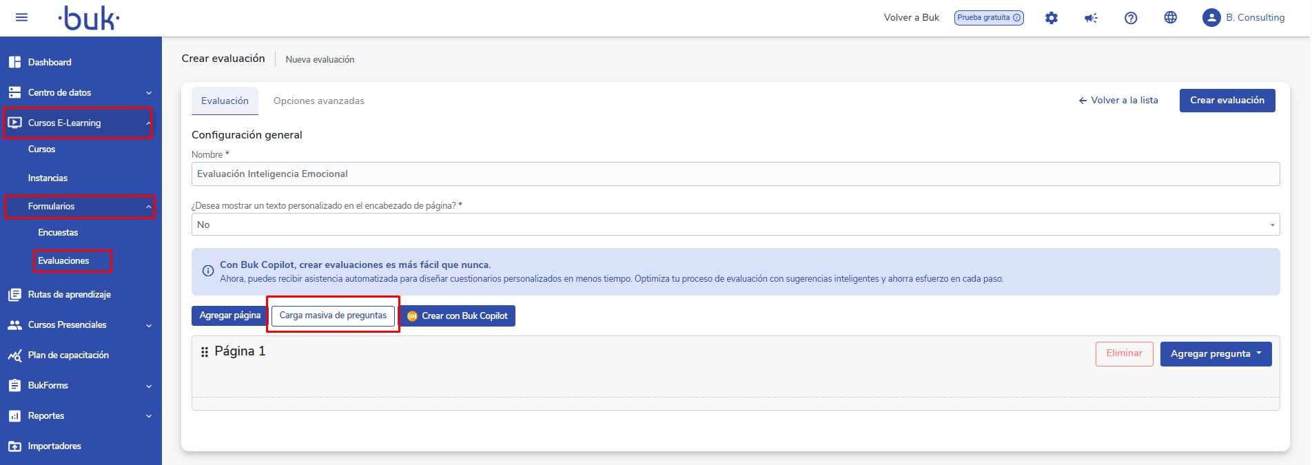 This article is designed to guide users with the role ofAdministratororSuperadministratorin creating evaluations within the e-learning courses module in Buk, and in particular to explain how to use the bulk upload of questions from an Excel file