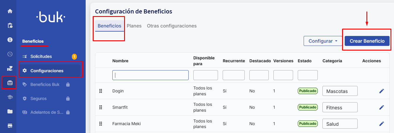 - ¿Cómo crear y administrar Categorías de beneficios?