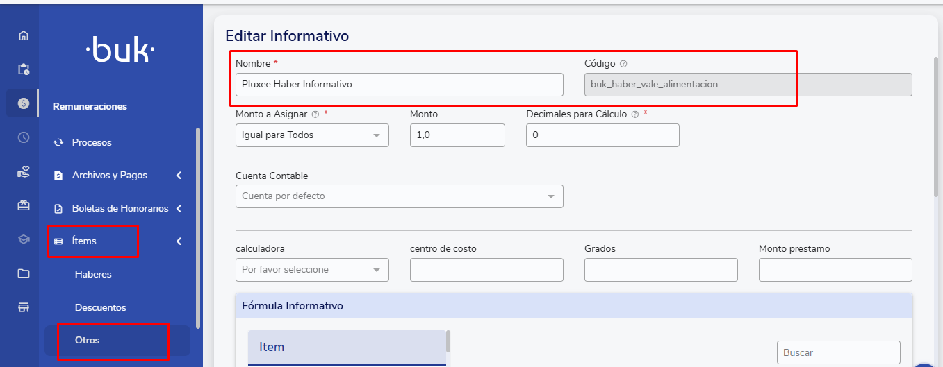 Important:Remember to inform clients that they must configure your informational items to the “Expense” account so that you can later obtain your tax savings for Income Tax purposes. Additionally, if you manage accounting through BUK, you must request the integrations team to have the informational items displayed in the centralization.