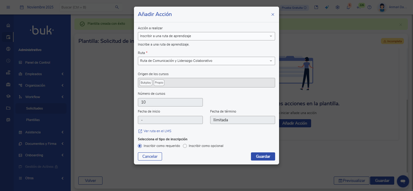 Enrollment type:define whether it will bemandatoryoroptional. - Save the changes and activate the template.
