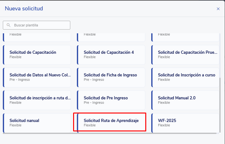 - Select the created template Example: Request forEnrollment in a learning path.