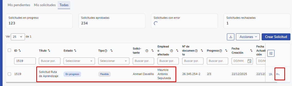 - Go toHome → My requests → All
