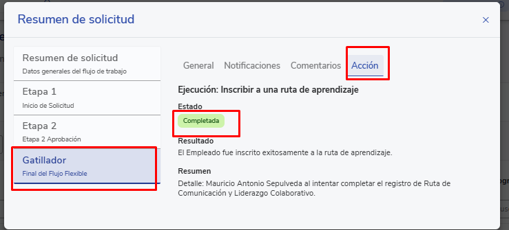 This configuration allows adapting the flow to the needs of each organization, ensuring that only the appropriate users can initiate enrollment requests for a learning path.