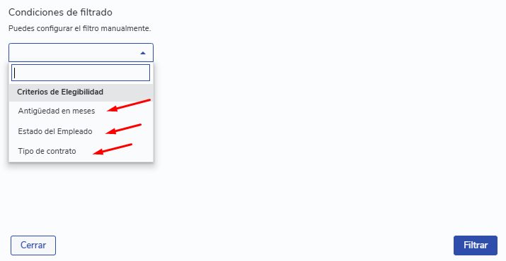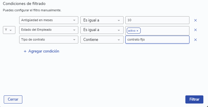 You can filter who qualifies according to their personal or contractual attributes using the operators"AND"(must satisfy all rules)::