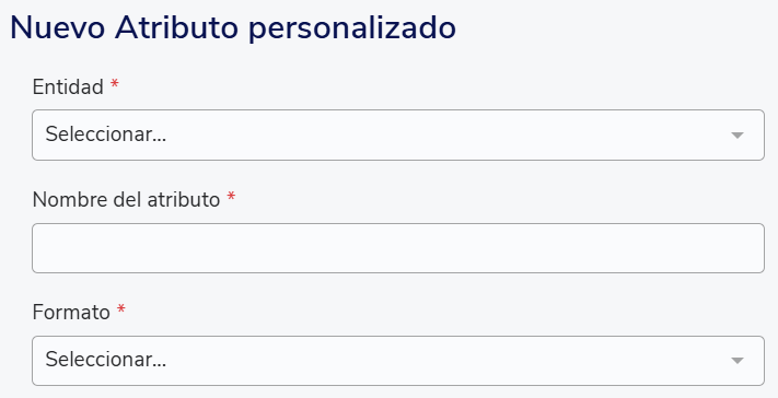 Dentro de esta vista, se puede crear un atributo con el botón "Crear Atributos personalizados". Acá se debe escoger la entidad "Postulantes", escribir el nombre del atributo y seleccionar el tipo de formato que este tendrá.