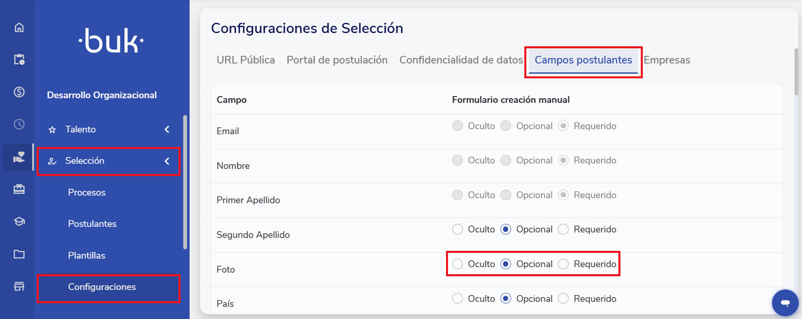 En Buk puedes agregar campos al formulario del postulante en un proceso de selección, debes seguir los siguientes pasos.