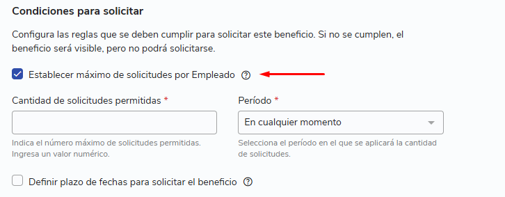 ¿Cómo configurar un beneficio para que sea solicitable?