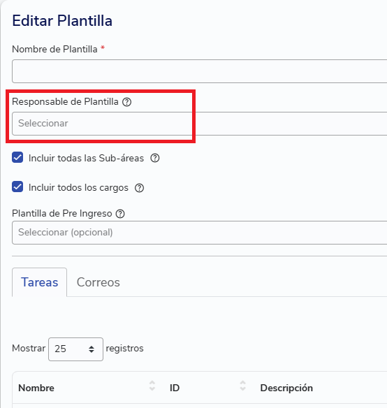 Por ejemplo, una jefatura podría ser responsable de una plantilla de proceso de su área y encargarse de mantener sus tareas o correos, sin por eso convertirse en administradora de todo Onboarding.