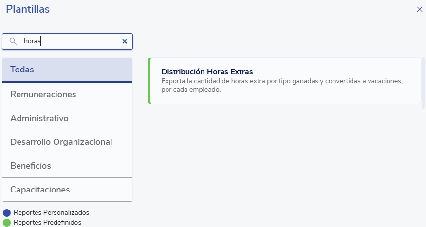 Finalmente, si necesitas un reporte de todas las horas extras convertidas a vacaciones, puedes descargar el exportador personalizado Distribución Horas Extras, que encuentras en el menú lateral, sección Información. Luego haces clic en Exportadores y allí en Crear Reporte.