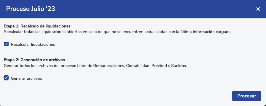 3. Actualizar y revisar las liquidaciones: antes de pagar la nómina, se recomienda procesar el mes y hacer una revisión de las liquidaciones, esto puedes realizarlo también desde el exportador personalizado >> nómina. o directamente en el proceso general al descargar los libros o liquidaciones.