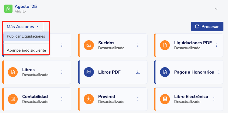 Posteriormente puedes decidir si quieres publicar o enviar las liquidaciones y si deseas abrir el siguiente el periodo: