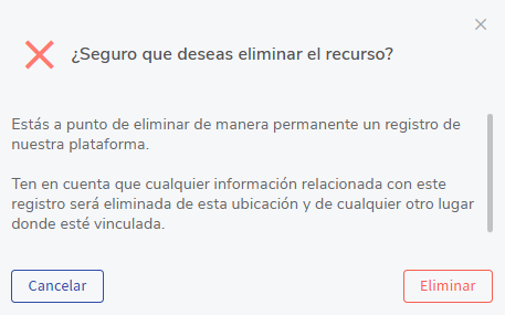 Por último si deseas desasignar o eliminar por alguna equivocación podrás hacer clic en Eliminar y confirmar la acción desde la ventana emergente.