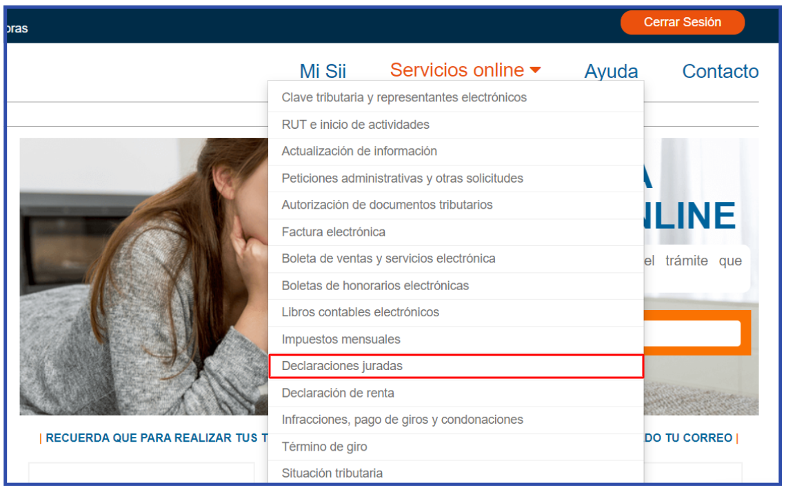 Accede a la plataforma del SII: inicia sesión en el SII para comenzar el proceso, luego, dirígete a la sección "Declaraciones Juradas" en el menú principal.
