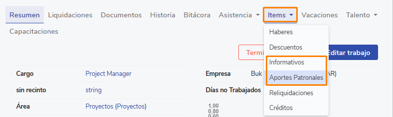 Buk proporciona estas opciones para ayudar a las empresas a cumplir con las normativas locales y a proporcionar una transparencia adicional a sus empleados. Los ítems informativos y los aportes del empleador pueden ser usados para cumplir con regulaciones específicas, proporcionar beneficios adicionales a los empleados o simplemente ofrecer una imagen más completa de las compensaciones y beneficios otorgados.