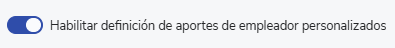 Para poder comenzar a trabajar con la creación y personalización de Aportes Empleador e ítems Informativos debes tener activa las siguientes configuraciones generales: "Habilitar definición de aportes de empleador personalizados" para personalizar Aportes Empleador, "Habilitar definición de ítems informativos" para poder crear informativos y "Habilitar Bonos Formulados" para que puedas formular los informativos.
