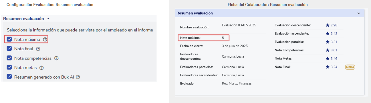 Importante: los cambios afectan únicamente lo que el colaborador ve en su ficha al revisar su evaluación. Si eres supervisor o administrador, seguirás viendo toda la información de la evaluación en la ficha del colaborador.