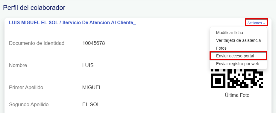 - Haz clic en Acciones → Enviar acceso al portal.