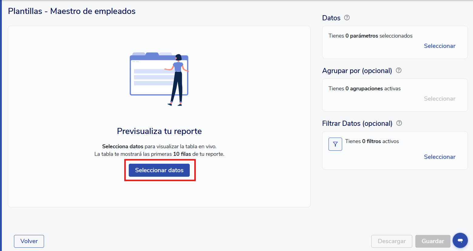 Crea un nuevo reporte desde una plantilla de Maestro de empleados, o edita uno existente desde Mis reportes.