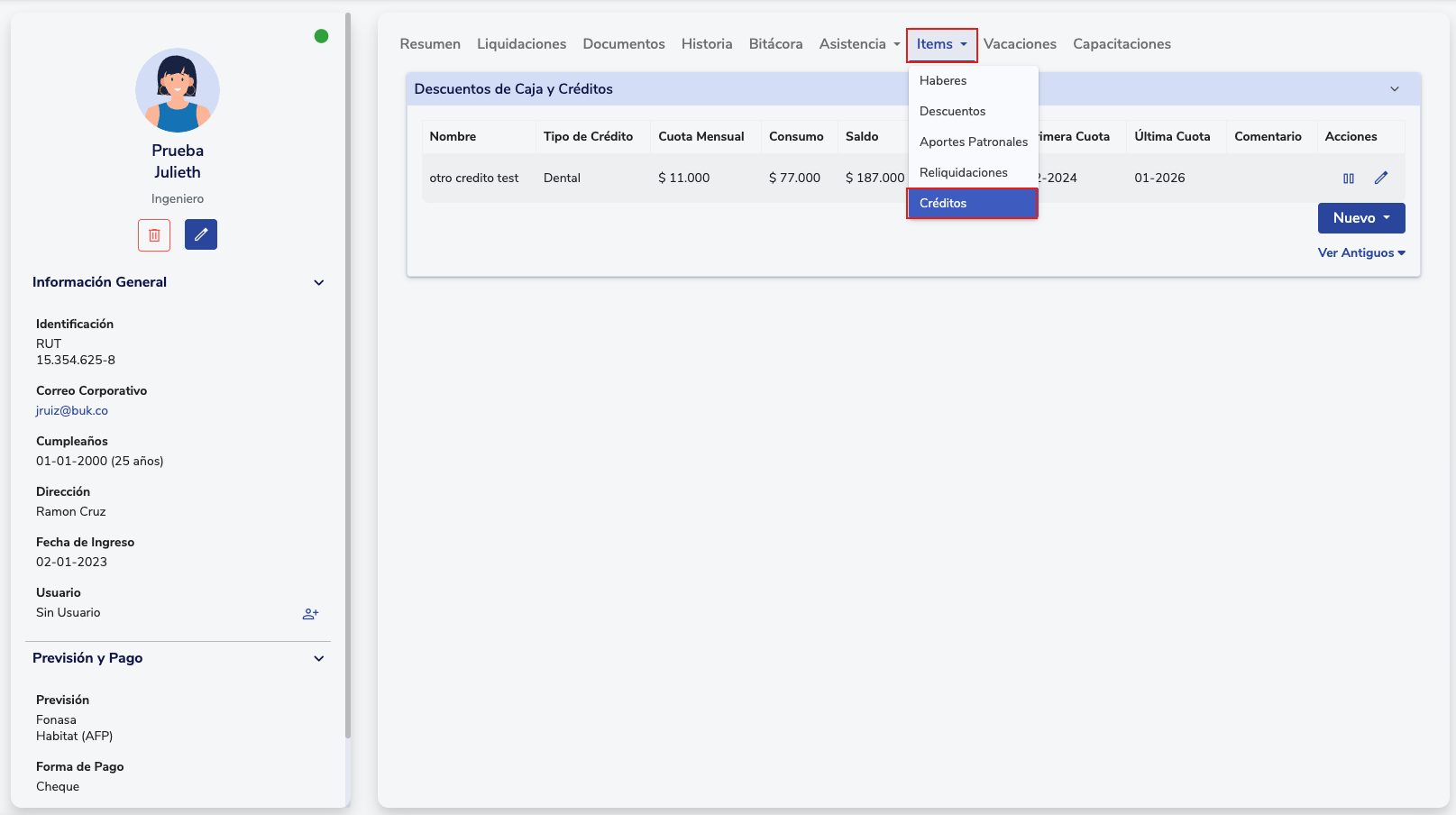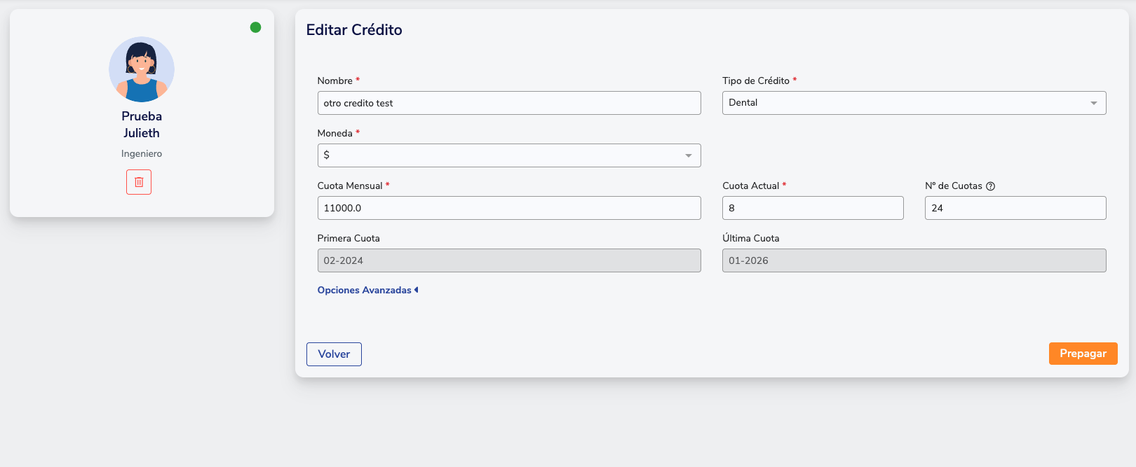 Haz clic en "Editar el crédito" para realizar el ajuste.