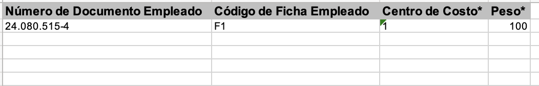- Completa el archivo con los datos de los colaboradores y el centro de costo que corresponde a cada uno.