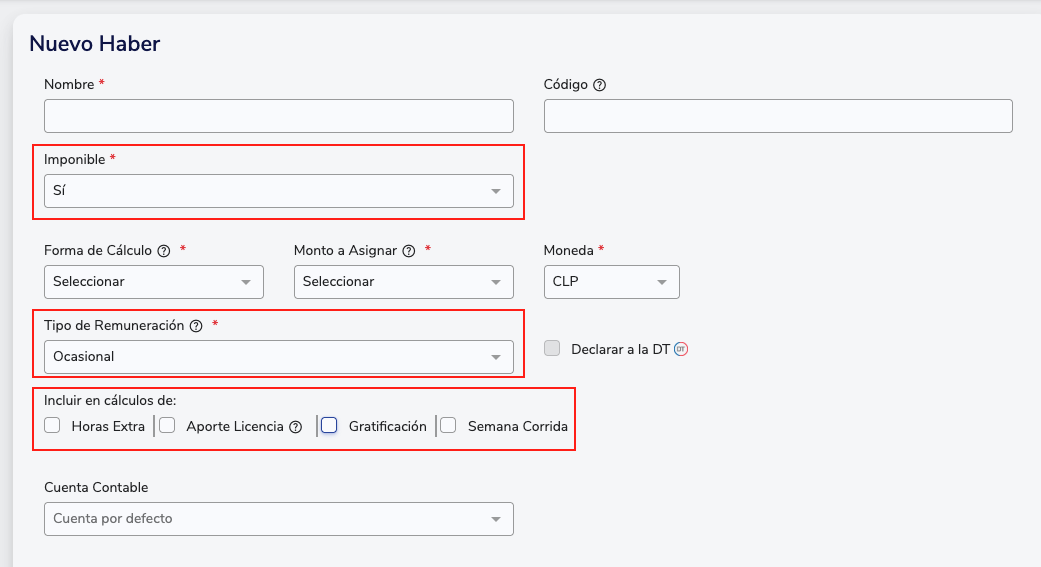 Además, no debe ser base de cálculo de gratificacón, horas extras, aporte licencia ni semana corrida, por lo que te recomendamos partir por estas configuraciones, ya que el sistema dará error si configuras algo distinto.