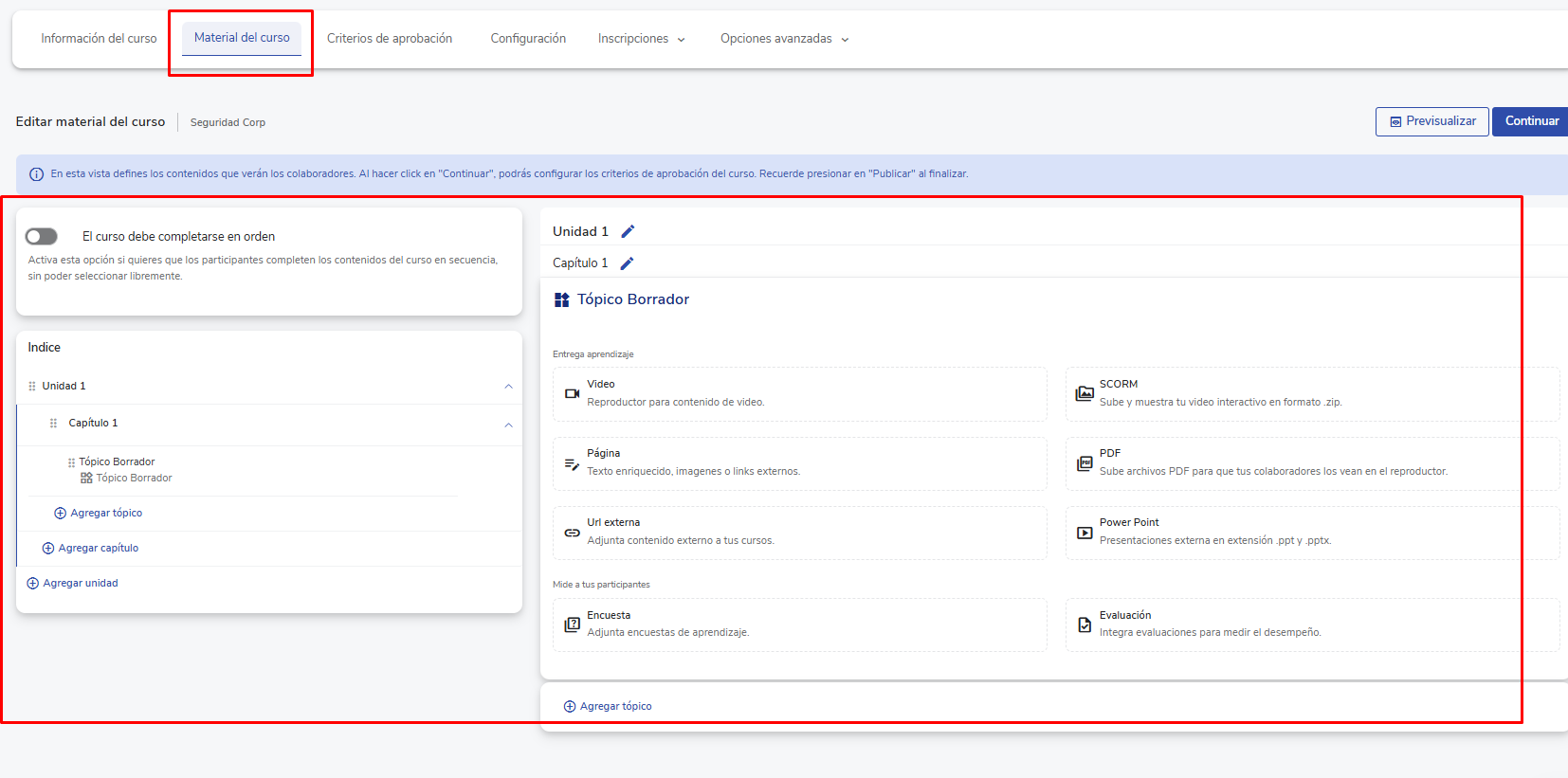 4. Información del curso en la vista previa