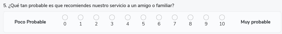 Los colaboradores seleccionan un valor en una escala numérica.