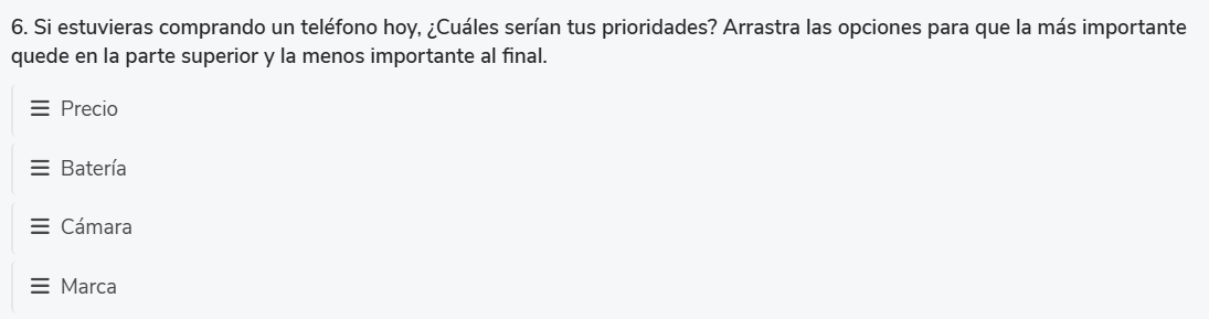 Los colaboradores ordenan distintas opciones según su preferencia o relevancia.
