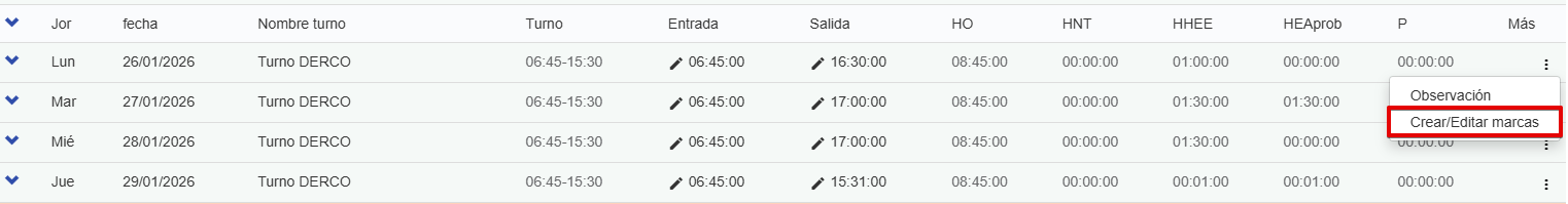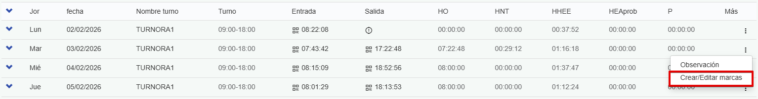 Una vez que guardes la marca manual, aparecerá la hora ingresada con el ícono de un lápiz: