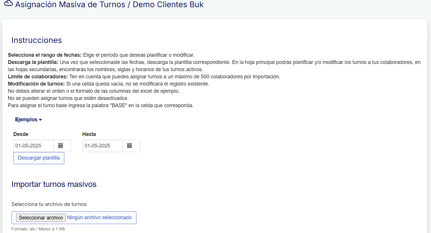 Presta atención a las indicaciones de la página de importación masiva de turnos.