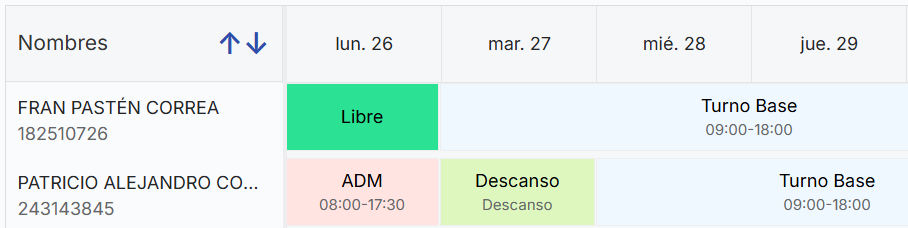 Buscamos al colaborador que le necesitamos modificar el turnos, podemos aprovechar las diversas formas de búsqueda en esta sección del calendario.
