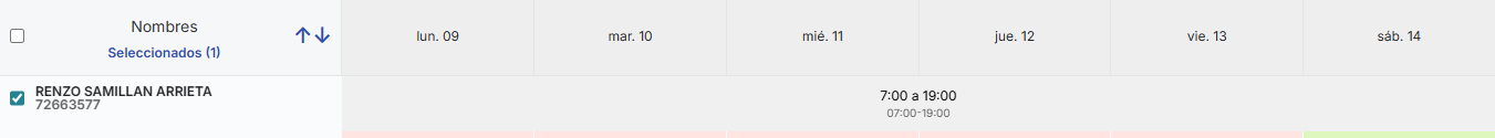 Importante: Desde esta vista, las modificaciones en fechas pasadas solo pueden realizarse colaborador por colaborador. No es posible seleccionar a varios colaboradores para asignar turnos retroactivos.