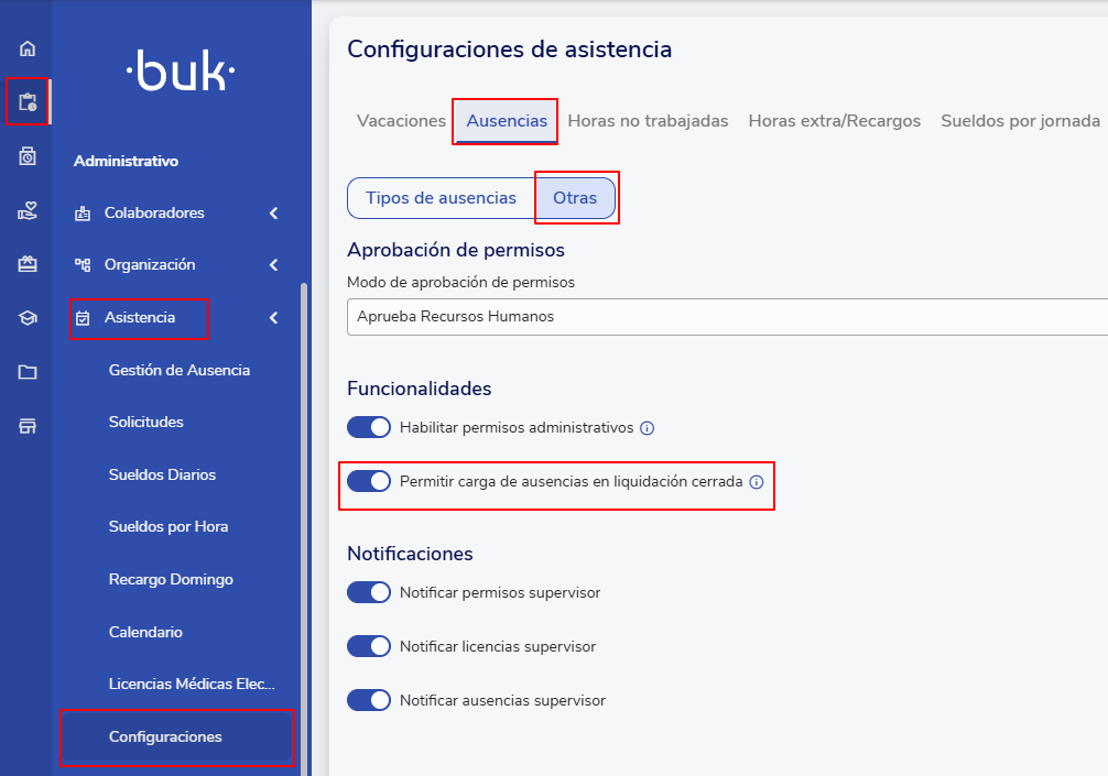 Esto se puede hacer mediante importadores, pero primero, verifica que tengas activada la opción de "Permitir Carga de Ausencias en Mes Cerrado" dentro de la sección: