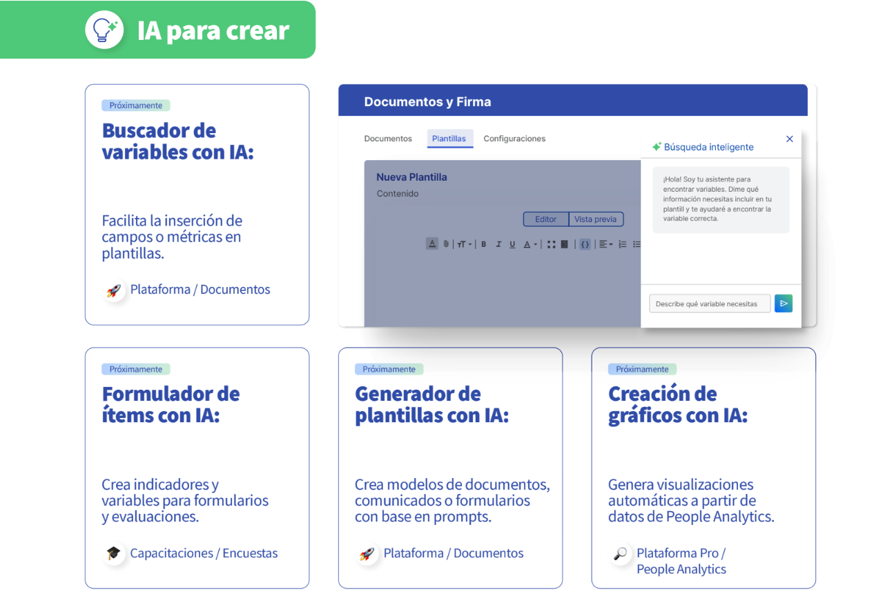 Nota: Funcionalidades que aparecen con la etiqueta de "Próximamente" se encuentran actualmente en desarrollo y se irán incorporando a la plataforma en el corto plazo.