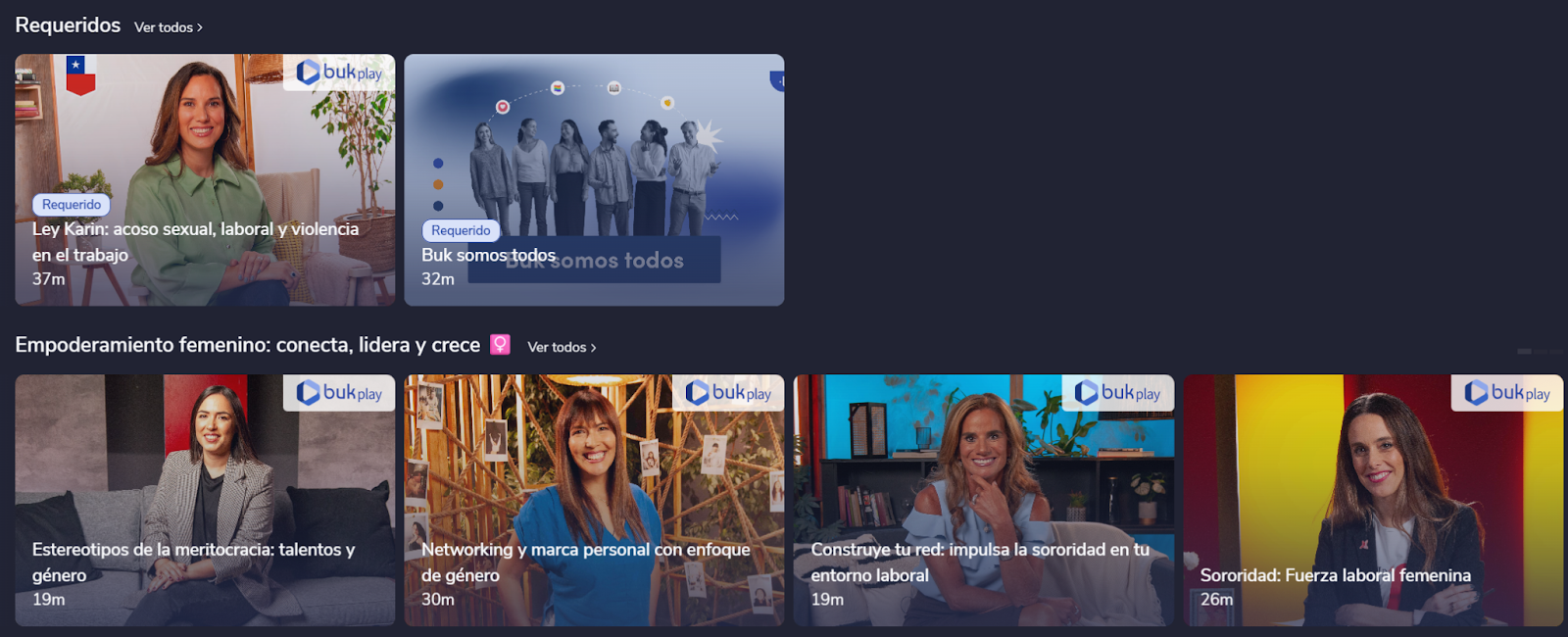 - Totalmente integrado al LMS Buk (sin licencias externas).