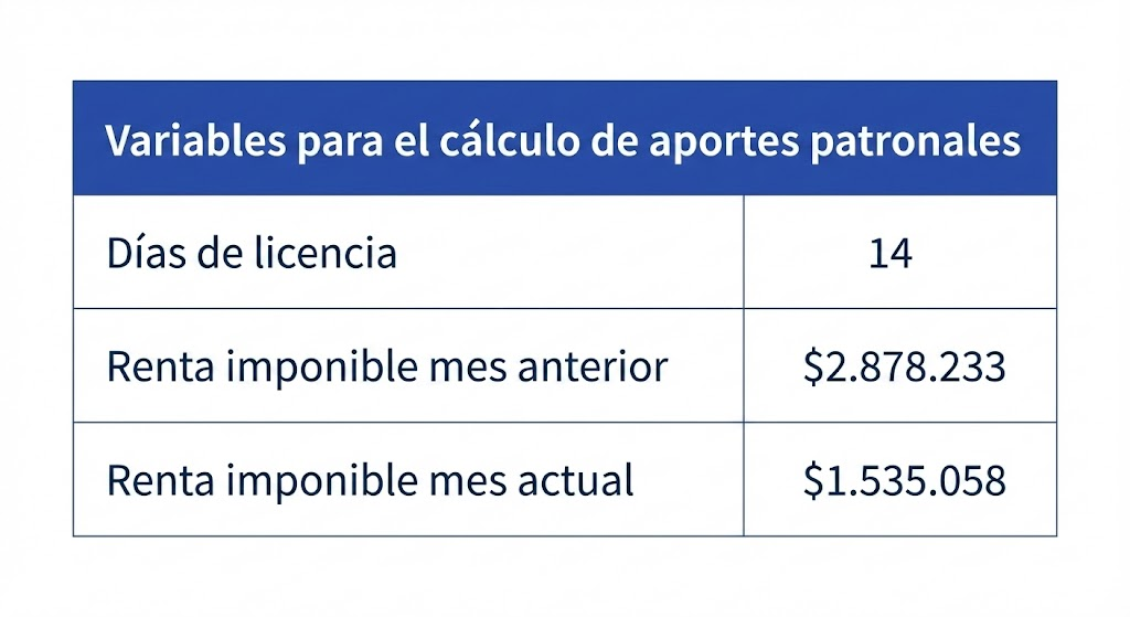 Con ese valor, podemos calcular el aporte del empleador por los días con licencia: