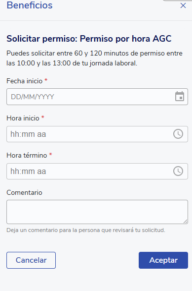 Este artículo explica el paso a paso para solicitar un beneficio integrado con permisos desde el módulo Beneficios.